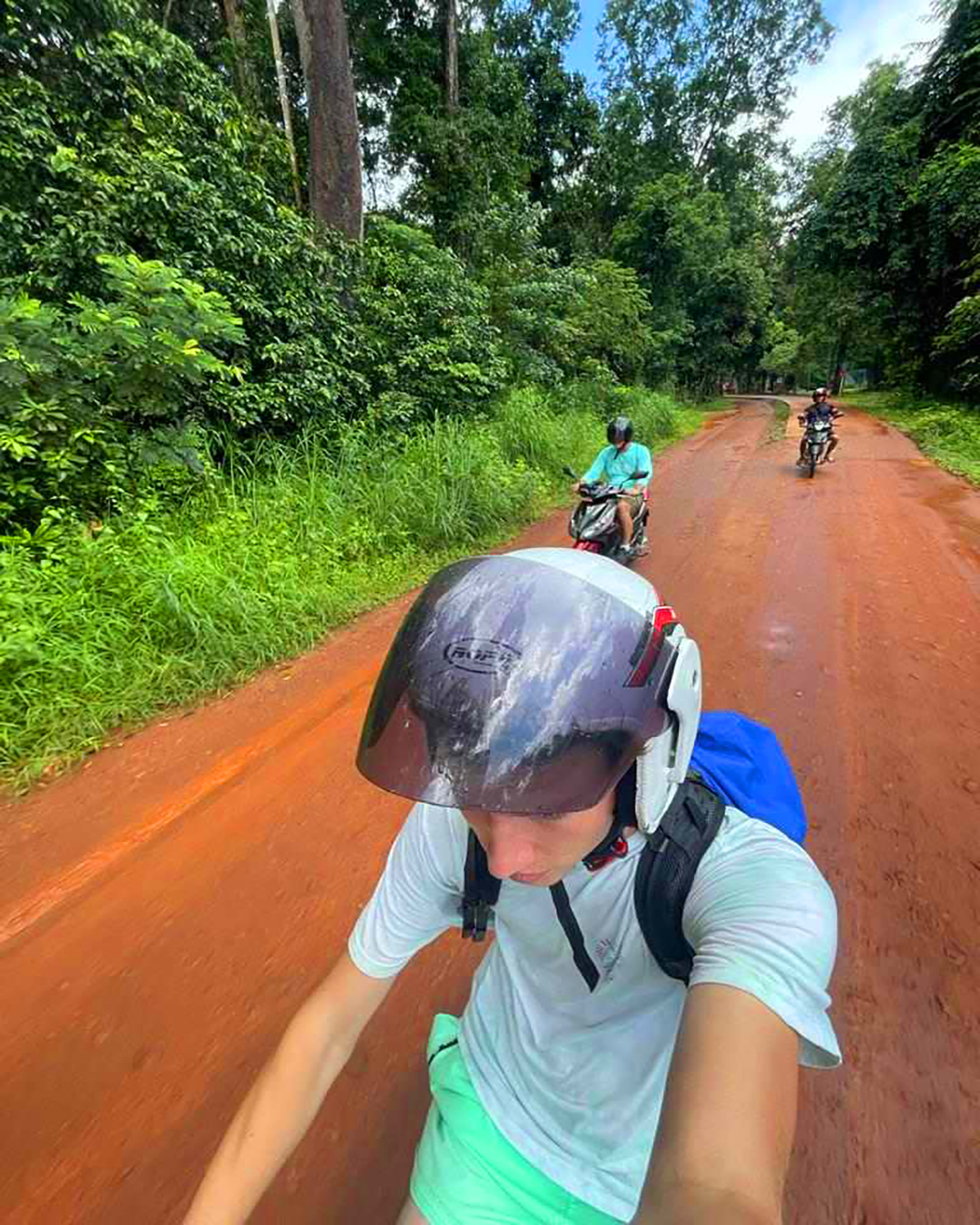 I will pick you up from your hotel at 8 a.m. and take you to where you and I will rent motorcycles for the day. We will ride for 1.5 hours to the start of the trail to Kulen Mountain. Here we leave the motorcycles and walk along a steep forest path, arriving at a stunning cliff lookout high over the forest floor. We walk on to the Kulen waterfall, where we will stop for a swim and a lunch break. After lunch, we will visit Preah Om Thom with the reclining Buddha, sacred to Cambodians, where a monk will bless us. We will ride back to the city, stopping at some of our favorite lookout spots for breath-taking photos.